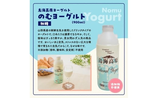 - ※着日指定・離島への発送はできません。 鳥海高原のむヨーグルト 900ml×1本 鳥海高原ヨーグルト ・クリーミースイート 400g×1個 ・さわやかプレーン 400g×1個 ・甘さすっきり加糖 400g×1個 鳥海高原フルーツヨーグルト ・おとめ心 400g×1個 ・ブルーベリー 400g×1個 ・ラ・フランス 400g×1個