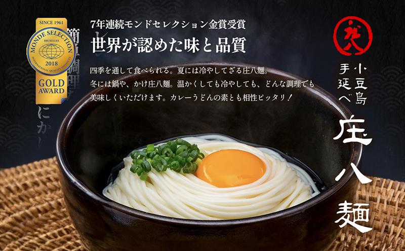 小豆島の白いお醤油で煮た香川県産オリーブ夢豚が入った、瀬戸内イリコ等、天然の旨味たっぷりのお出しを使ったカレーうどんつゆです。庄八麺とセットでお届け!