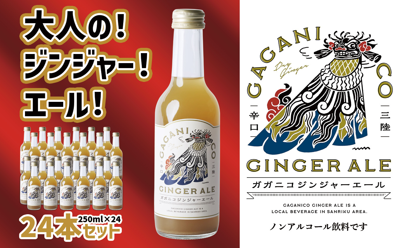 生姜をまるごと1個使用し、岩手県陸前高田の「北限のゆず」のほか、はちみつ、カルダモン、シナモン、クローブなど7種のスパイスを配合。生姜のフレーバーのあとに、スパイシーさと柚子の爽やかさが特徴。辛口で強炭酸。三陸地域の権現様“ガガニコ”に願いを込めてクラフトビール会社が作った、大人向けの本格的なクラフトジンジャーエールです。