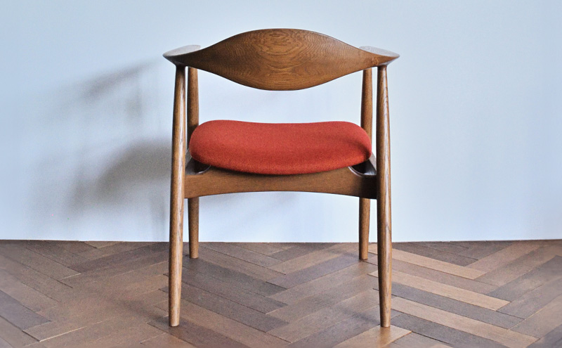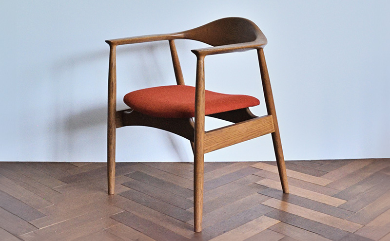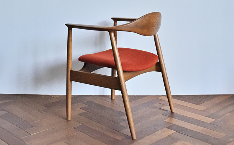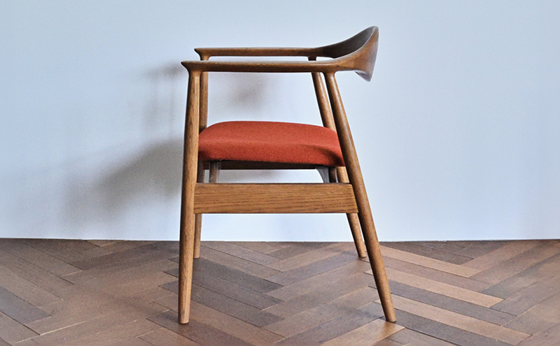 手をのせる部分は特にこだわり、滑らかに仕上げています。背もたれの曲線が背中にフィットしてとても良い感じです。後ろ脚も勾配がついており、スマートなデザインになっています。