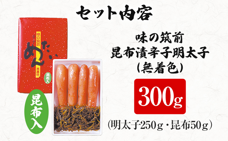 味の筑前 昆布漬辛子明太子300g(無着色)昆布付(折箱)