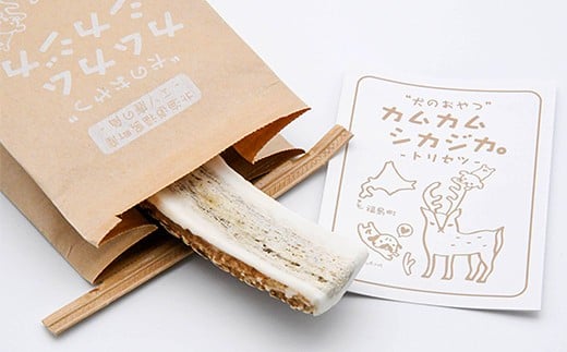 本商品はこれまで未利用資源であった鹿の角を利用し、愛犬のおやつ(おもちゃ、歯石取り)として発売。