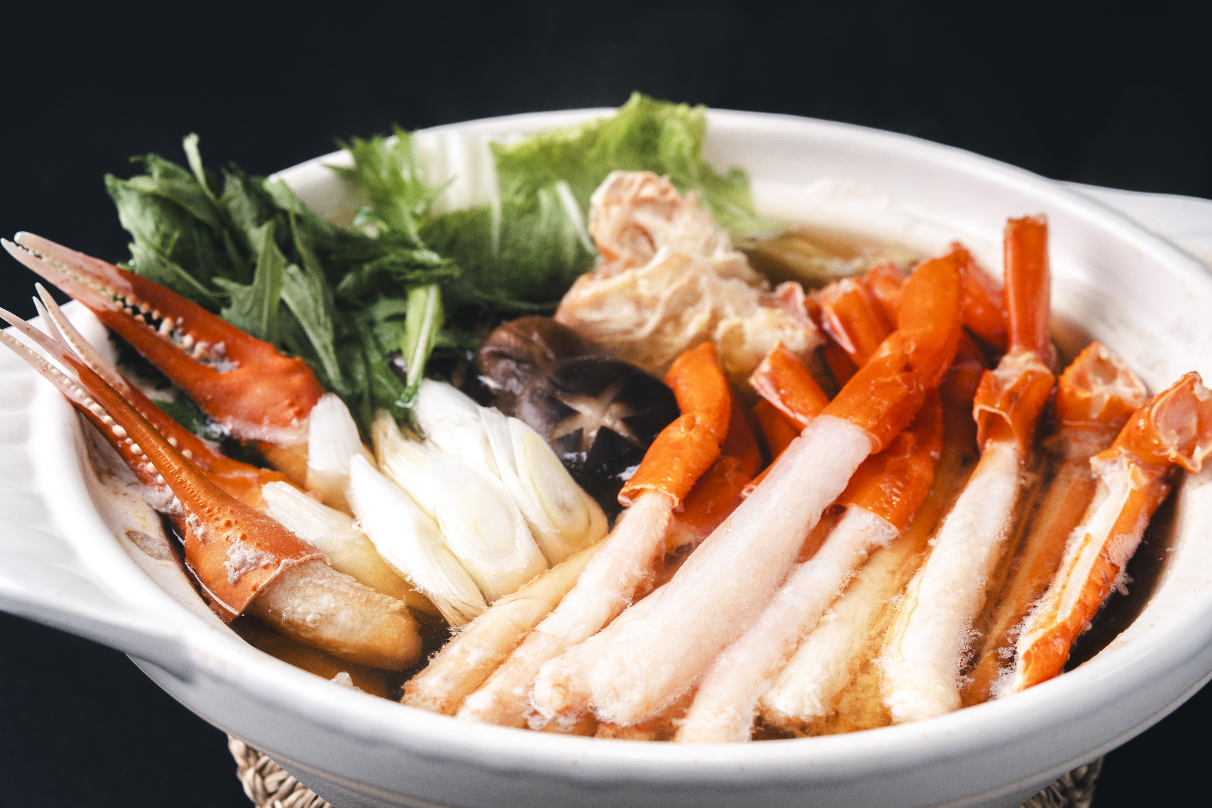 自社窯で蟹を茹でた時に出た蟹の旨味たっぷりの茹で汁を使用した蟹鍋専用の鍋つゆがセットになっていて、