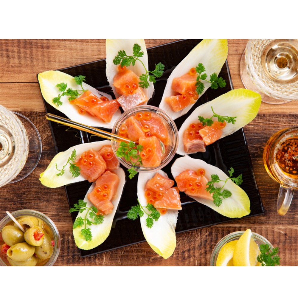 新鮮な鮭を魚醤を入れた独自のタレで味付けし、いくらと和えました。お酒の肴、ご飯に相性抜群です。北海道の海の幸が詰まった生珍味をご賞味ください。