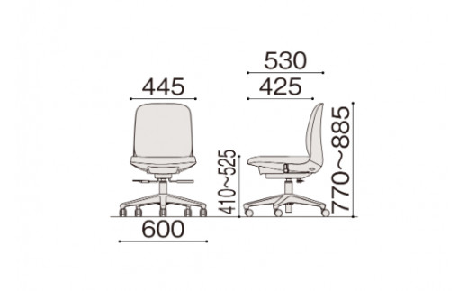 【サイズ】W445(脚:600mm)×D530×H770~885mm(SH410~525mm)