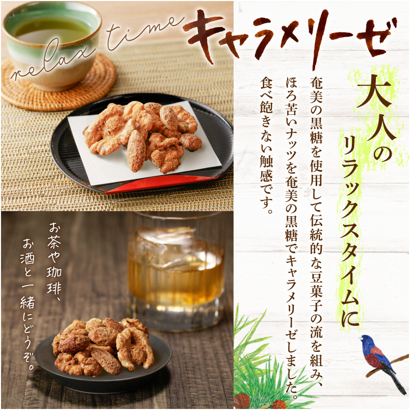 <奄美黒糖キャラメリーゼ(大豆&カシューナッツ)>