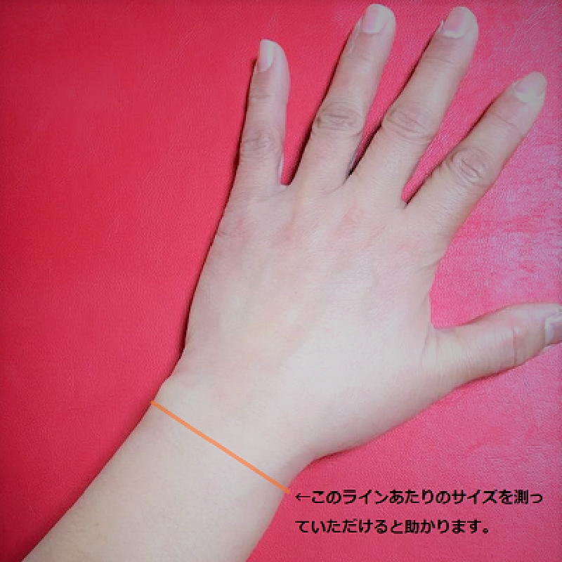 通常は実寸プラス0.5cmですが、緩めが良い方は、少し緩めのプラス1cmで製作いたしますので、 「通常」または「ゆるめ」にさせていただくのか備考欄にお書きください。