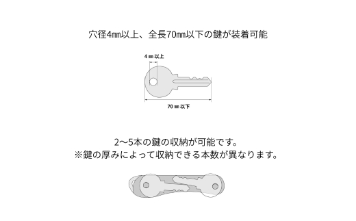 仕様:2~4本の鍵の収納が可能。鍵の厚みにより収納できる本数が異なります。