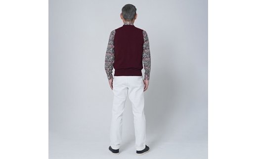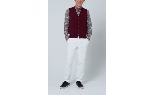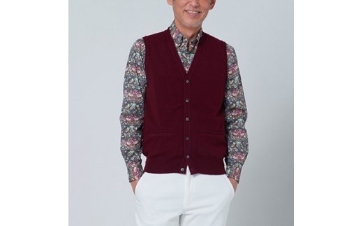 日本製 カシミヤ100% 前開きベスト ワイン Sサイズ(身幅46cm 身丈59.5cm) 1着