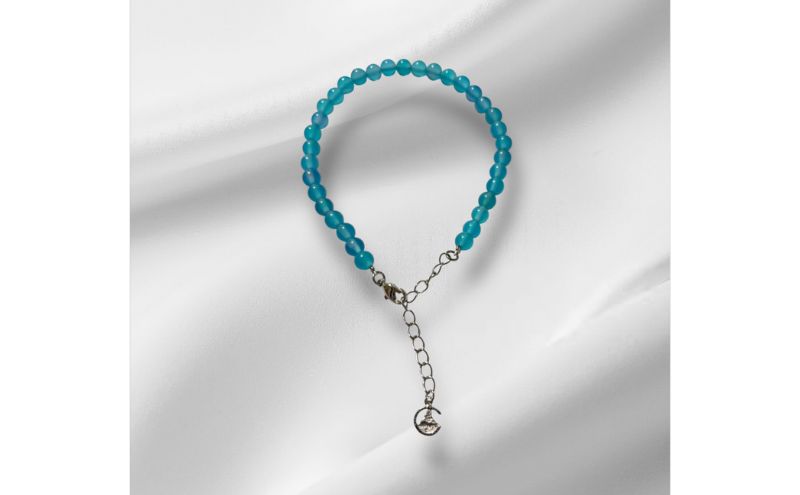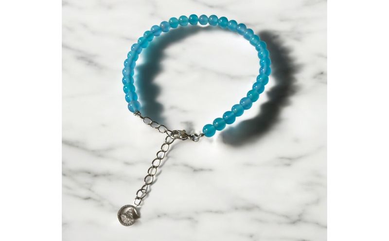 茅ヶ崎の象徴「サザンビーチ」と「えぼし岩」をテーマに海の青さをブルーの天然石で、サザンCとえぼし岩のチャームを付けて表現したアンクレットです。