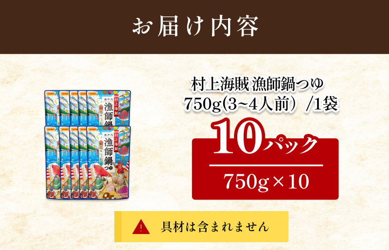 村上海賊 漁師鍋つゆ (3~4人前/袋)750g/袋×10パック(16食分)