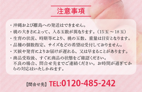 ※生育の状況、時期等により、桃の玉数、重量は目安となります。