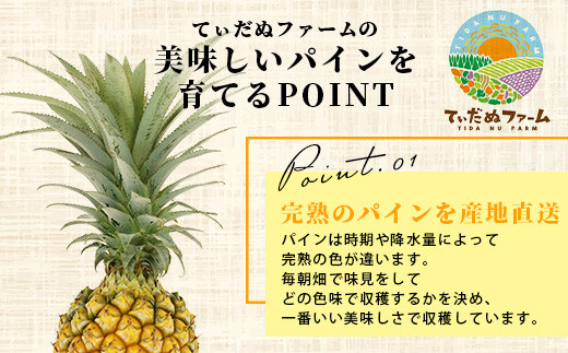 てぃだぬファームでは、一番おいしい時期のパインを皆様にお届けできるように栽培を管理しています。