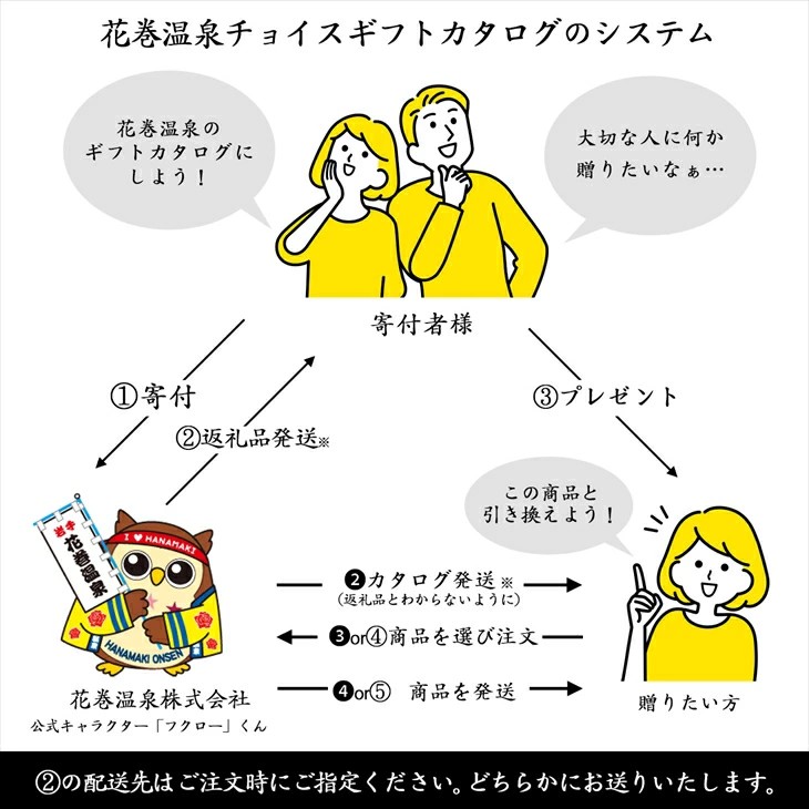 ②ご指定の住所に花巻温泉よりをチョイスギフトカタログを発送