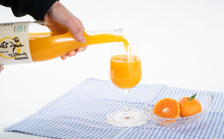 こだわりの和歌山産有田みかんのみを集めたこだわり農家の味つくり。本物味をつくりたい、本物の味をお届けしたいと、有田みかん農家が集まり「味皇」というブランドを誕生させました。まず原料をイオン水にて洗浄し、みかん果実を一つづつ選別し、半分にカットしてそっとやさしくカット断面から果皮の油分が入らないように圧搾おります。原料は11.5度から12.0度になる様にブレンドを行い、風味、味を損なわないように果汁を低温殺菌しております。濃厚でコクがありながらさっぱりとしたキレのある口当たりが特徴のジュースです。720mlのビン1本に対して約30個分のみかんを搾りこんでおります。