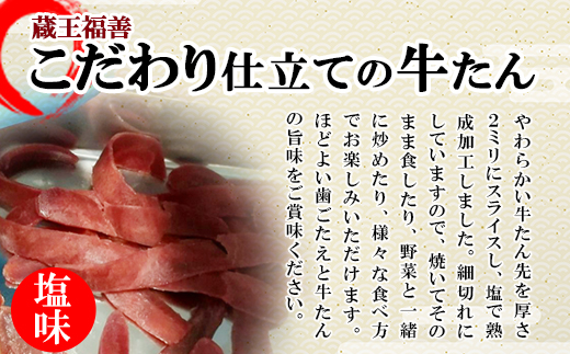 牛タン先を厚さ2mmにスライスし、塩で熟成しました。