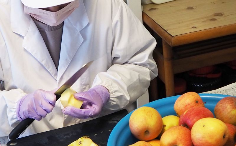 収穫後に低温貯蔵し甘みが増したりんごを一つ一つ手作業で厚く剥き、24時間かけ60℃でじっくり乾燥。美味しさと栄養がギュッと凝縮されています。