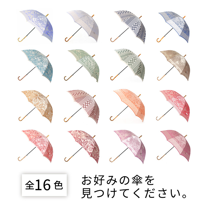 タテ糸とヨコ糸で織りなす色のハーモニー。その美しさを、繊細でコントラストが魅力的な切り絵のように表現しました。傘だけでなく、使う人も美しくなれるように。傘を通した光は、まるでコスメのように肌を美しく整えます。シリーズで16色をご用意。好きなコスメや似合う服を選ぶように、あなた本来の美しさを引き出す傘を選んでみませんか?大小のバラたちが、傘の上で咲き誇る優雅なデザイン。特徴的な大きなバラを中心に咲くその姿は、見る人たちを魅了し、ゆとりのある大人の上品さを演出します。贈り物としても人気をいただいているシリーズです。
