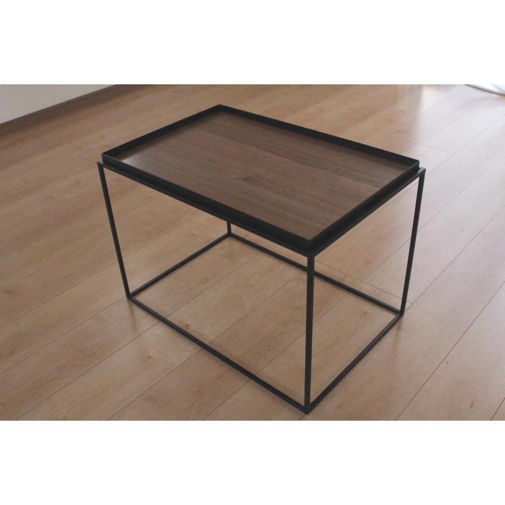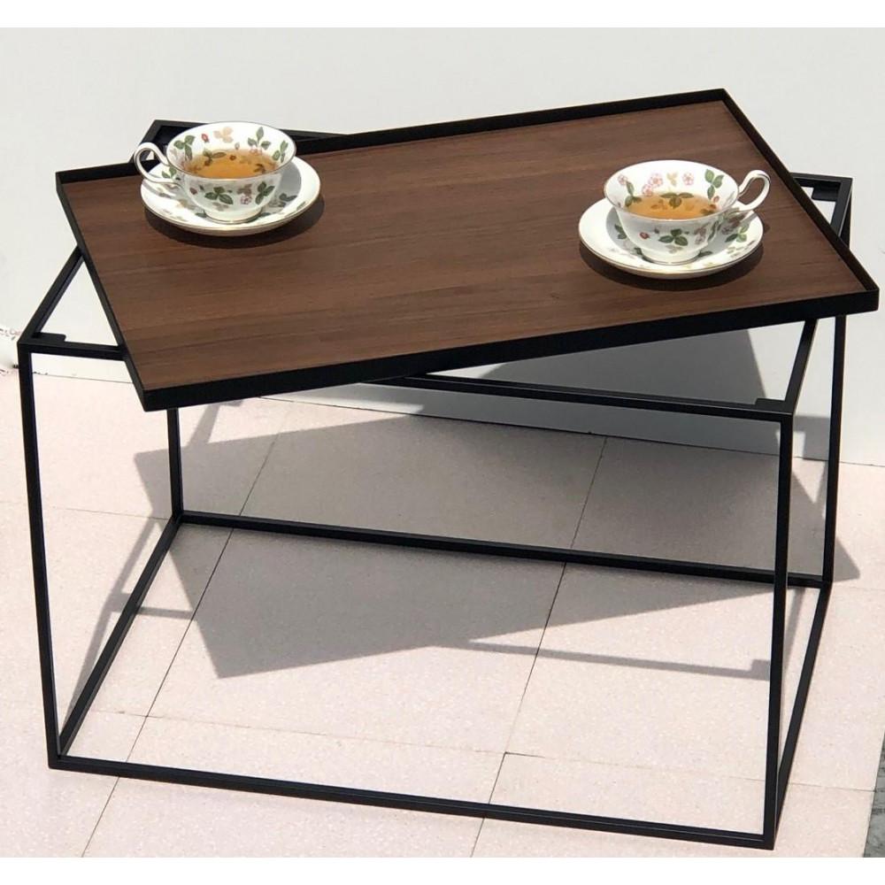 天板をはずしてトレイとしても使えるテーブルです。大きさ、カラーが選べます。本体フレームは9mm角パイプ。トレイは1.6mmの鉄板を曲げて溶接しています。