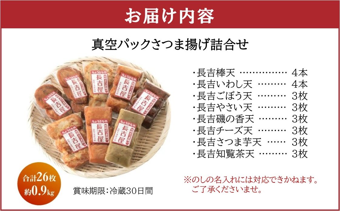 長吉屋真空さつま揚げ詰め合わせ(合計26枚、約0.9kg)
