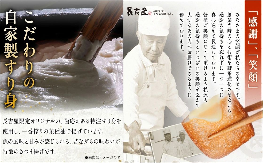 長吉屋限定オリジナルの歯応えある甘さ控えめの特注すり身で作りました。