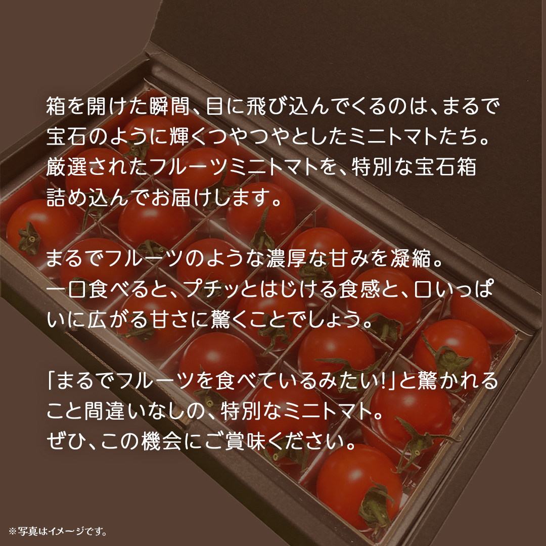 厳選されたフルーツミニトマトを、特別な宝石箱詰め込んでお届けします。