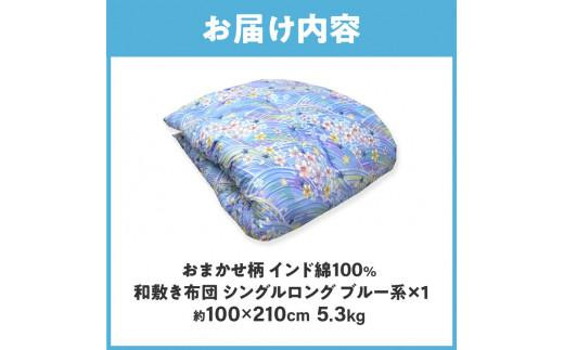 おまかせ柄 インド綿100% 和敷き布団 シングルロング ブルー系×1