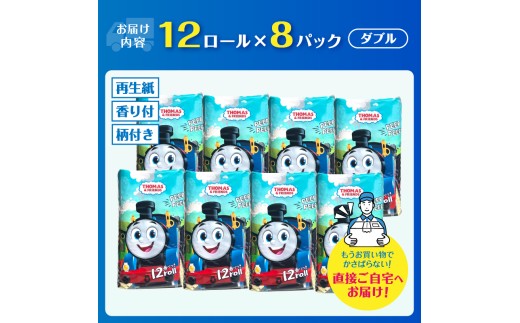 きかんしゃトーマス トイレットペーパー 96ロール ダブル 香り付 せっけんの香り 可愛い キャラクター 日用品 消耗品 防災 備蓄 ギフト トイレトレーニング 再生紙100% イズミコーポレーション 静岡県 富士市