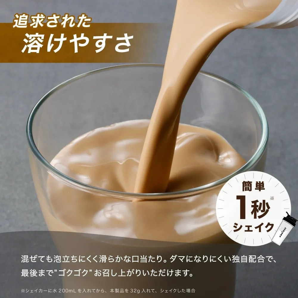 混ぜても泡立ちにくく滑らかな口当たり。ダマにならないような独自配合で、最後まで”ゴクゴク”お召し上がりいただけます。