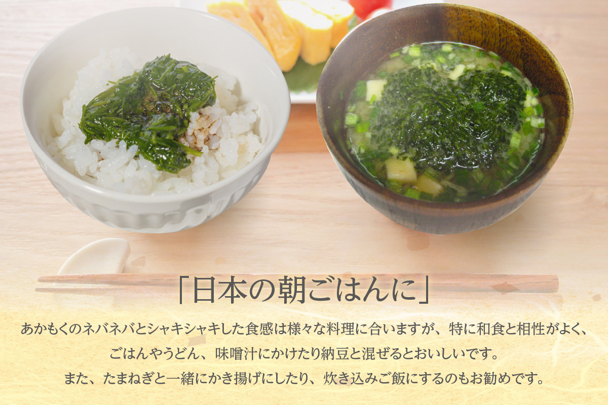 乾燥したあかもくは、和食、洋食、中華など幅広い料理との相性が良い食材です。