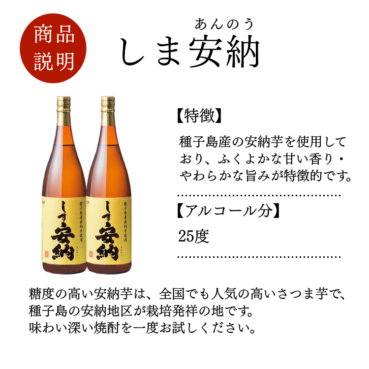 本格 芋焼酎【しま安納】1.8L×2本セットのご紹介です。