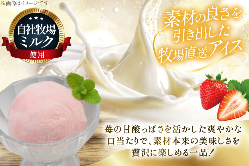 完熟苺の華やかな香りと、自社牧場ミルクのまろやかなコクが絶妙に溶け合います。