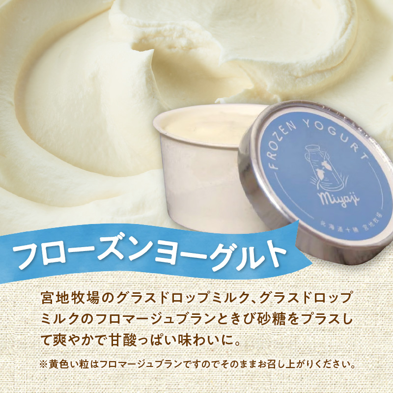 グラスドロップミルクときび砂糖に、宮地牧場のフレッシュチーズであるフロマージュブランを加えたフローズンヨーグルト。