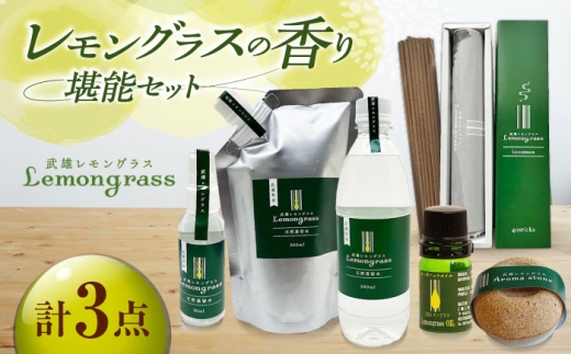 武雄の香り3点セット(レモングラスオイル&アロマストーン・天然蒸留水・インセンス)/クロップス武雄レモングラス [UBG005]