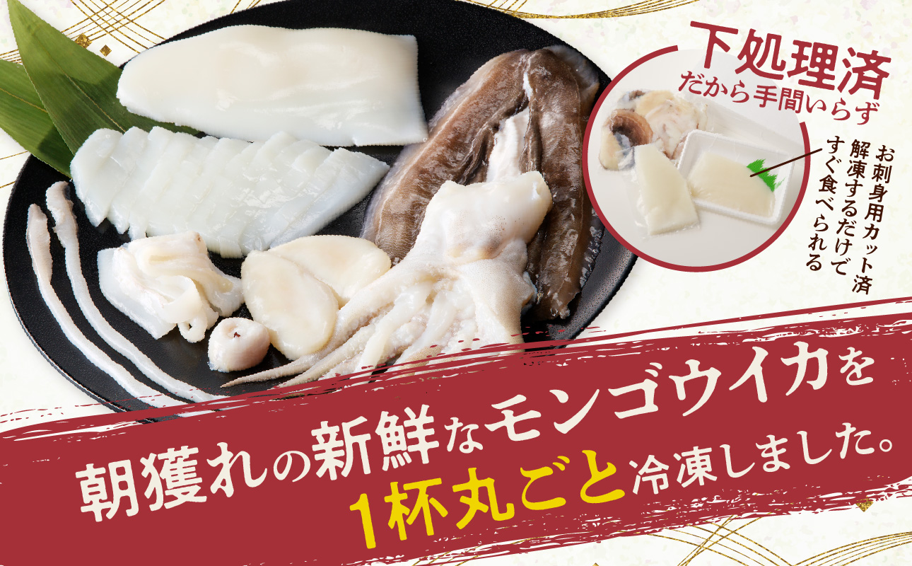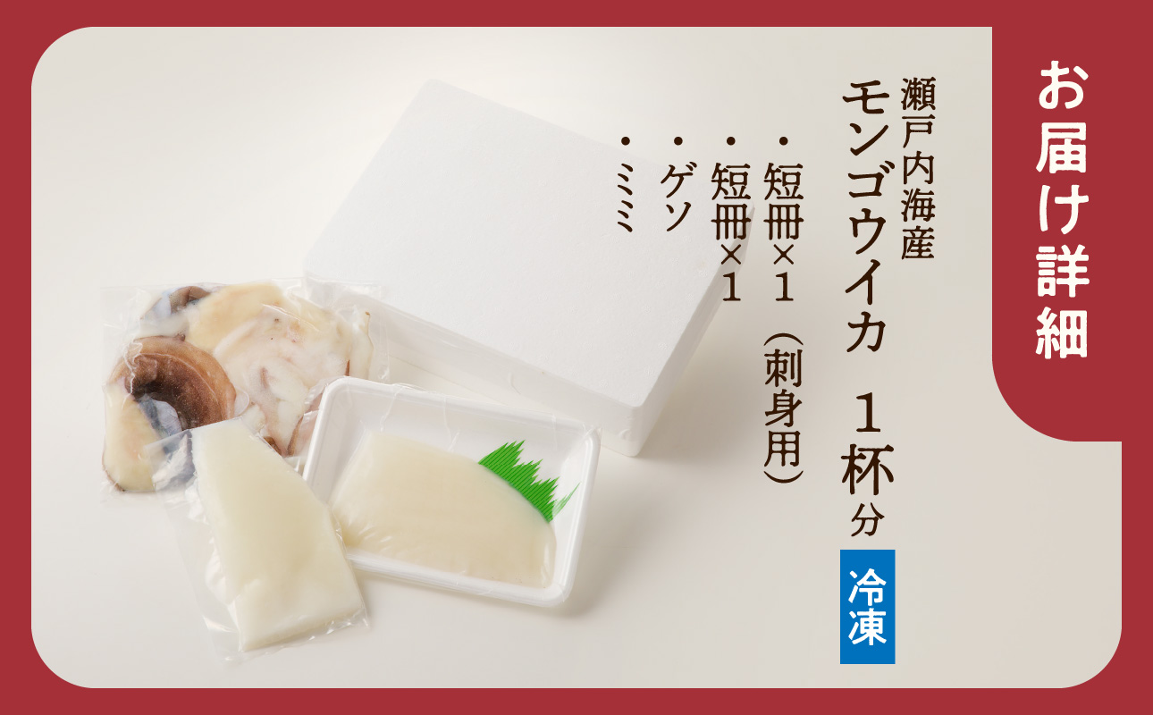 1杯 約1キロ〜1.2キロの瀬戸内産モンゴウイカを使用してます(長さ目安約30センチ程度)