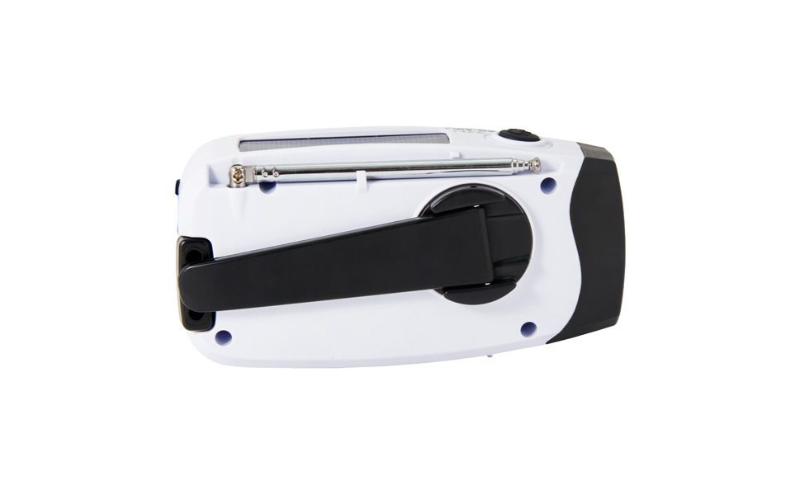 USB充電 4時間 / ソーラー充電 130-150時間 / 手回し充電 130分(1分間に130回転として)/ 連続使用時間 ラジオ 7時間以上(音量最大時)LEDライト 10時間以上 / ラジオ周波数帯 AM522~1620kHz/FM76~108MHz / LEDライト 電力 1W 光束 60lm以上(満充電時)色温度 8000~9000k / 防水等級 IPX3 / 仕様温度範囲 0~45℃ / 付属品 ストラップ、USBケーブル、保証書付取扱説明書