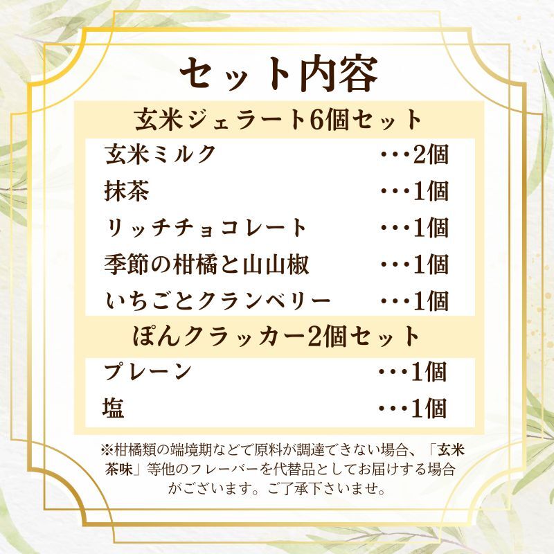【内容】玄米ジェラート 6個 ぽんクラッカー 2袋