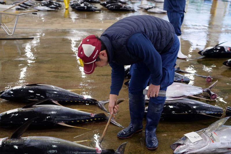 <紀州勝浦漁港で水揚げされる たくさんの「まぐろ」の中から選ぶ>