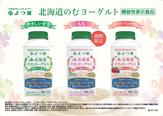 ・本品は機能性表示食品です(届出番号:H748(やさしい甘さ)/H749(ベリーミックス)/J1083(もも))。