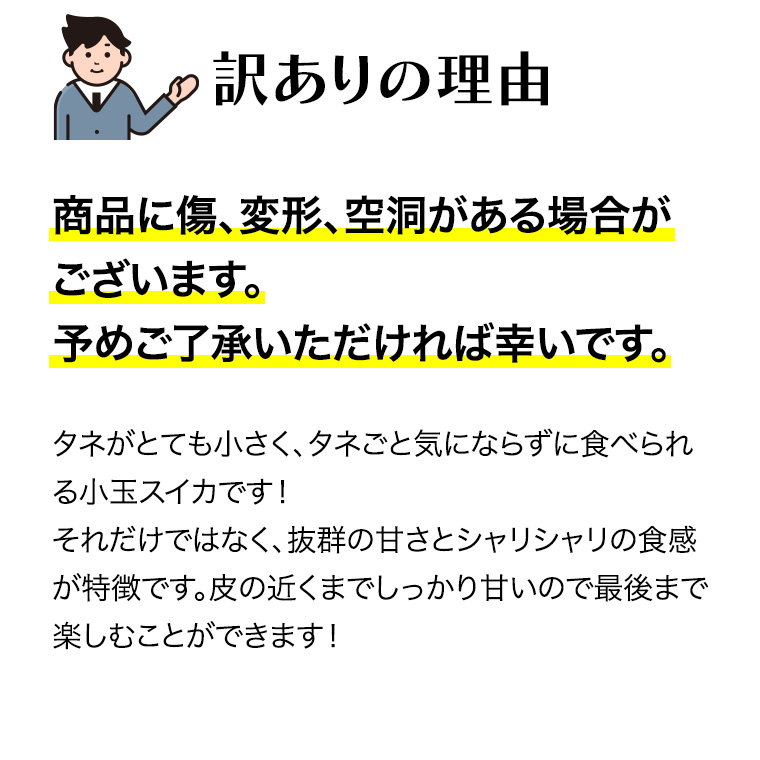 タネがとても小さく、タネごと気にならずに食べられる小玉スイカです!それだけではなく、抜群の甘さとシャリシャリの食感が特徴です。皮の近くまでしっかり甘いので最後まで楽しむことができます!