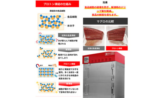 肉質のきめ細やかさと甘み、旨味が絶妙に調和し、一度食べたら忘れられない味わいをお楽しみいただけます。次世代凍結技術のプロトン凍結導入で高速凍結し風味を保ったまま限りなく生に近い新鮮な状態でお届けいたします。