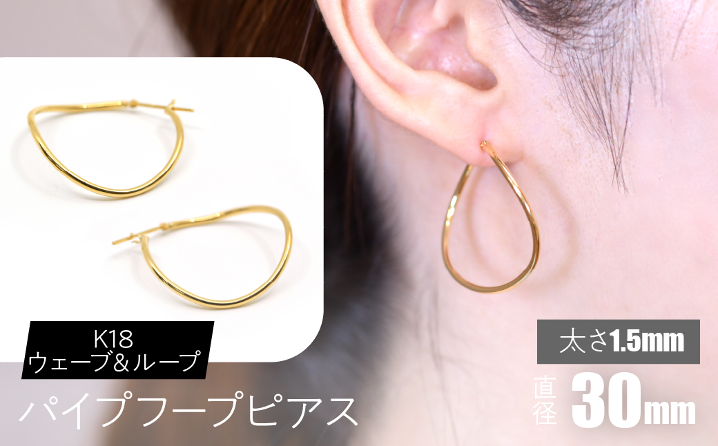 【K18 ウェーブ&ループ パイプフープピアス|さりげない個性、揺れる美しさ】