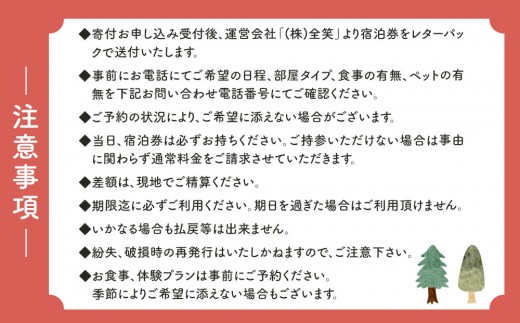 ●寄付お申し込み受付後、運営会社「(株)全笑」より宿泊券をレターパックで送付いたします。