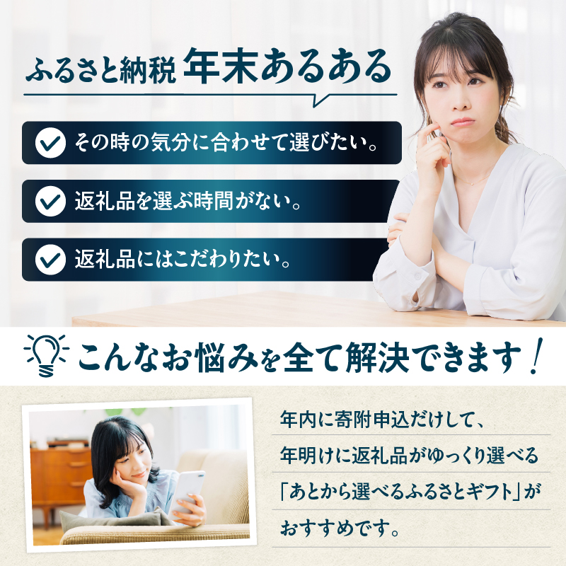 『忙しくて 選ぶ時間がない』という方も、返礼品は欲しい時に、後日ゆっくり選択できます。