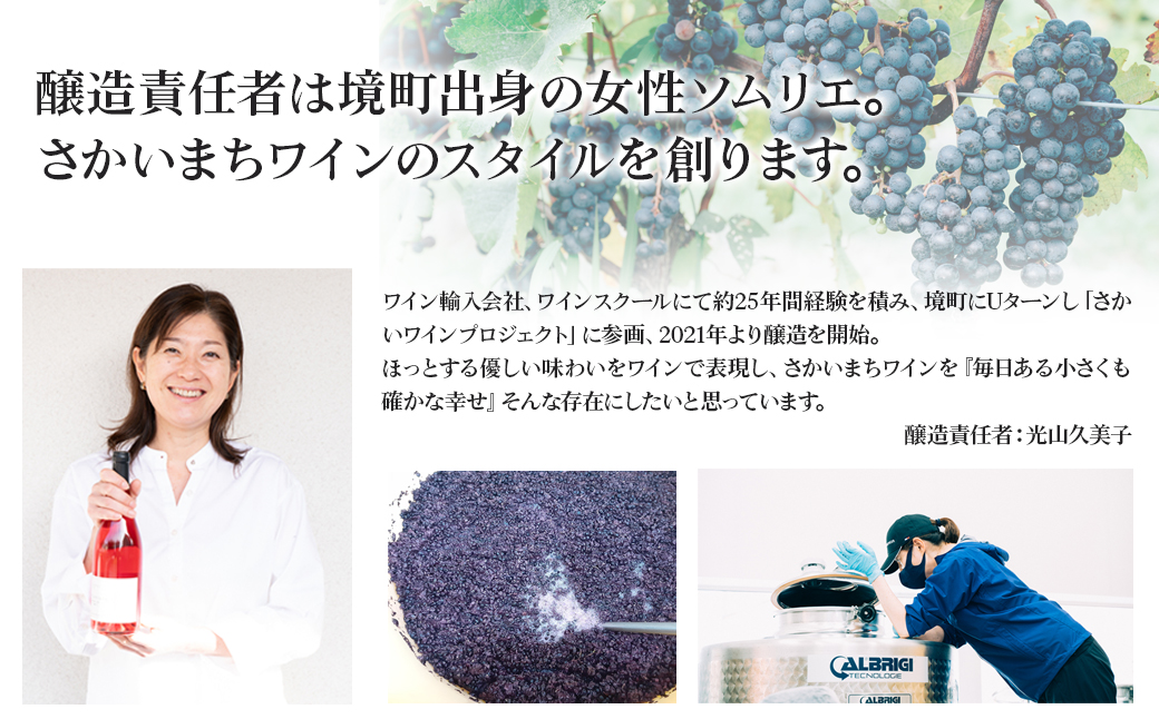 「さかいまちワイン」を丁寧に蒸留し、フルーティーで奥行きのある味わいに仕上げました。