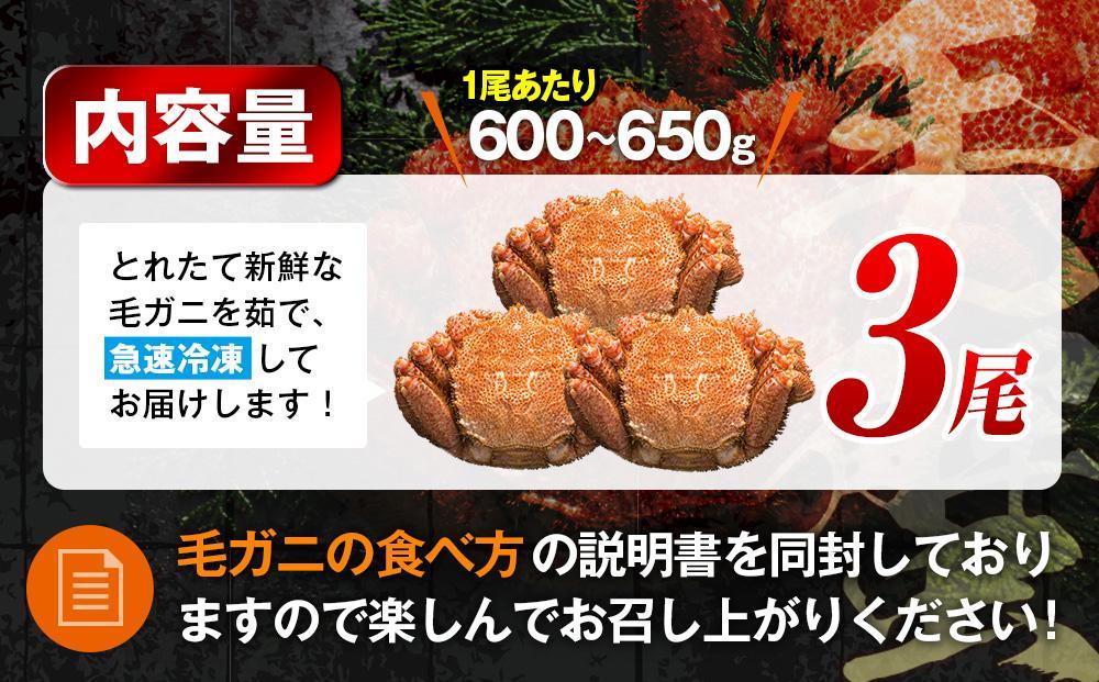 2026年産 ボイル冷凍毛ガニ 大3尾(600~650g)