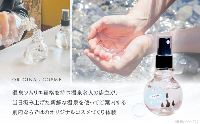 別府市内の温泉2か所選定後、入浴→温泉講座→その温泉水を使ってオリジナル温泉コスメづくり体験