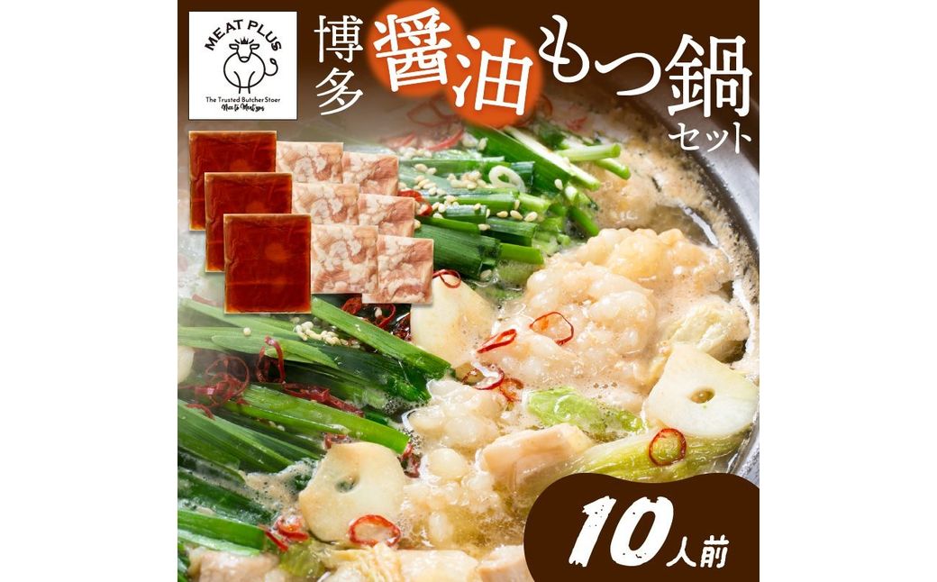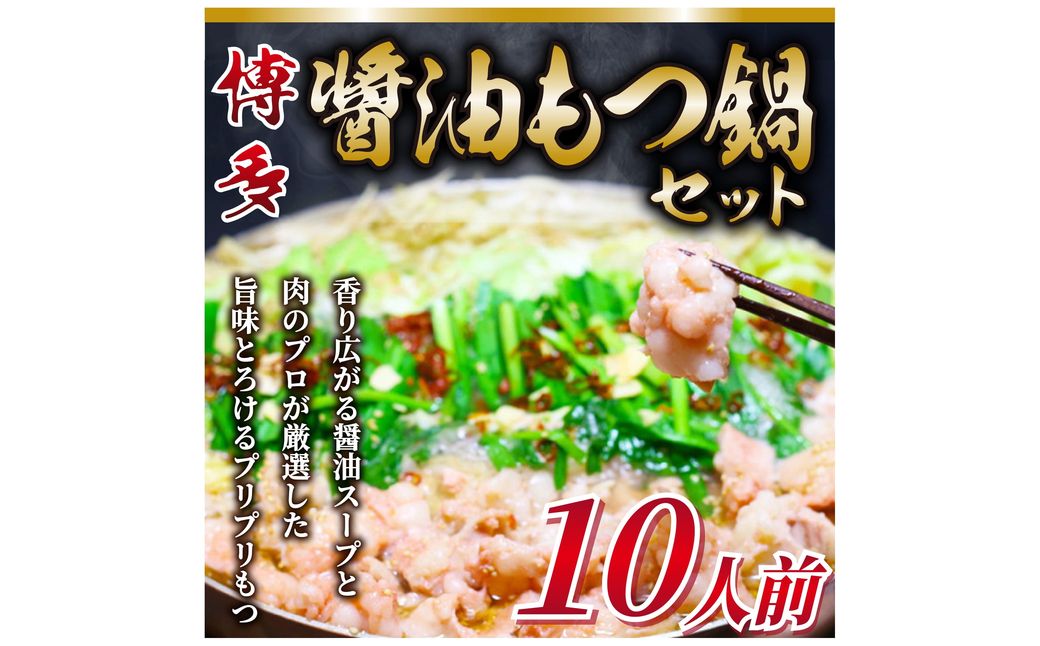 博多醤油もつ鍋 10人前セット(・牛もつ:200g×6パック ・醤油スープ:400g×3パック)