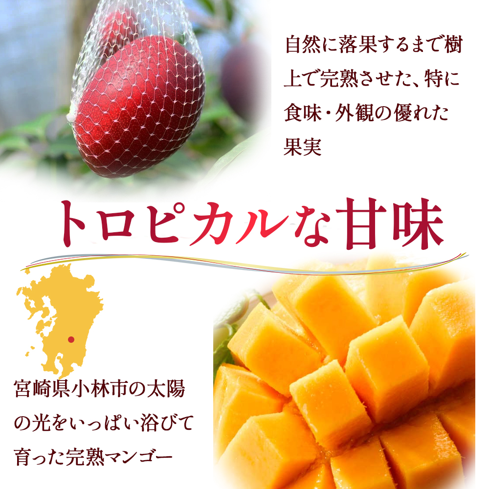 宮崎の太陽の光を浴びて育った小林市産の完熟マンゴー。