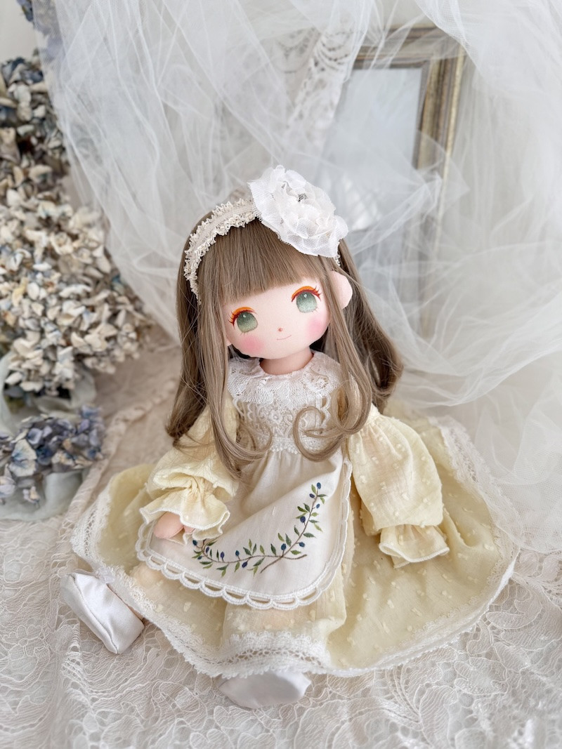 オリーブティアラちゃんは、香川県産のオリーブをイメージした手作りの着せ替え人形です。柔らかな素材と優しい色合いでお子様から大人まで幅広く愛されるデザインとなっております。お部屋のインテリアや贈り物にも最適です。2025年のAJCクリエイターズコンテストに入選した作品であり、その芸術性と独創性が評価されました。ワンピースの生地は香川県産のオリーブを使用して手染めされており、自然の温もりを感じられる仕上がりとなっています。大切な方への贈り物や、ご自分へのご褒美として心に寄り添う優しい表情と布の温かな風合いをお楽しみ下さい。